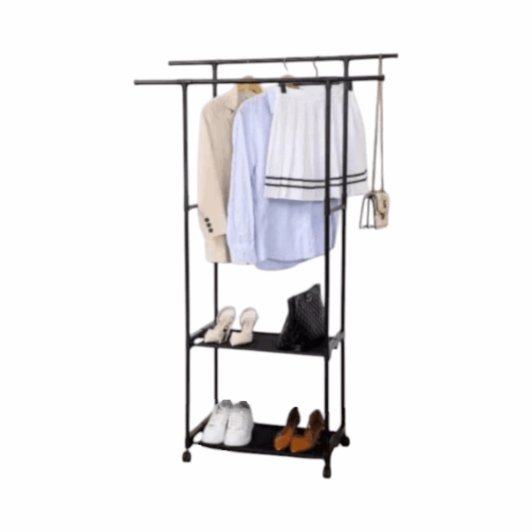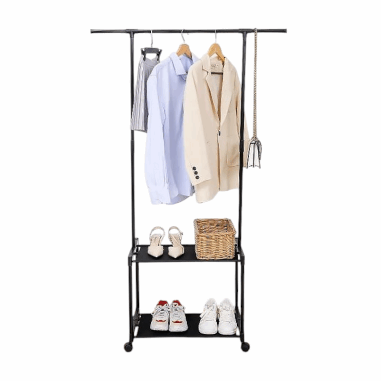 6,30 €Τροχήλατη κρεμάστρα δαπέδου με ράφι παπουτσιών – YX9108-2 – 522787 – Black