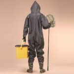 Φόρμα εργασίας ολόσωμη, μακρυμάνικη, με ενσωματωμένη γαλότσα, πλήρως αδιάβροχη, από εξαιρετικά ανθεκτικό υλικό υψηλής ποιότητας που καθαρίζεται εύκολα και δεν ερεθίζει το δέρμα.