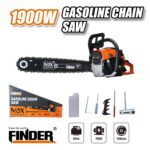 Βενζινοκίνητο αλυσοπρίονο από την νέα σειρά Max Series της Finder. O δίχρονος κινητήρας Finder εξασφαλίζει υψηλή ισχύ και αντοχή με εξαιρετική ροπή στρέψης που το καθιστά ιδανικό για κόψιμο κορμών δέντρων, μεγάλων κλαδιών και ξύλων.