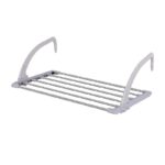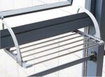 Απλώστρα ρούχων αλουμινίου με πλαστικές βάσεις σταθερής τοποθέτησης στο οριζόντιο κάγκελο και πρακτικό σχεδιασμό.
