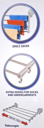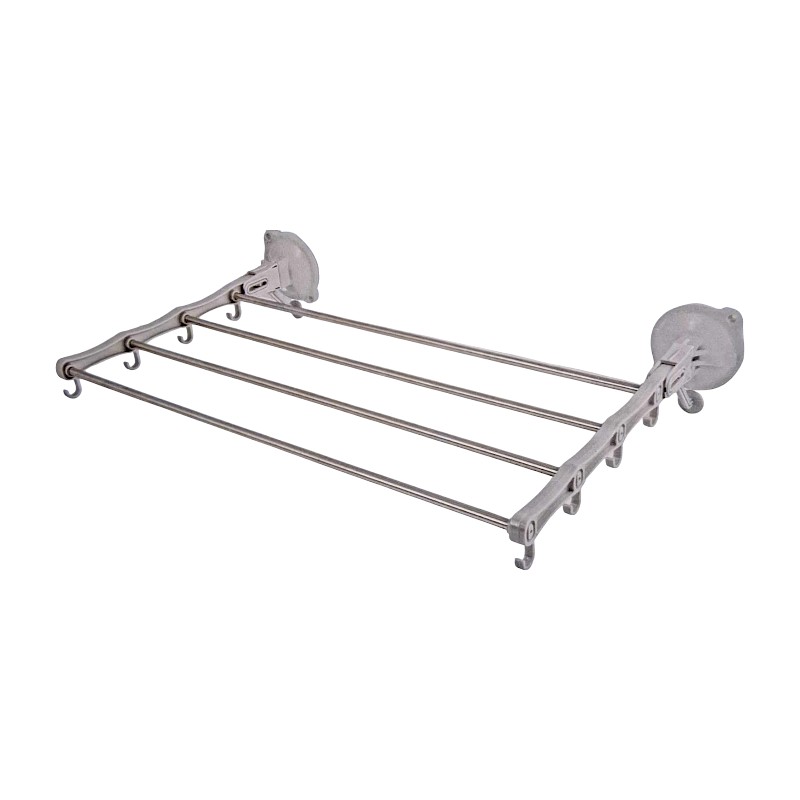 Απλώστρα ρούχων αλουμινίου με ισχυρές βεντούζες τοποθέτησης και πρακτικό σχεδιασμό. Διαθέτει τηλεσκοπικούς βραχίονες με ρυθμιζόμενο μήκος από 40 έως 70cm, ειδικά γαντζάκια για κρέμασμα μικρών ρούχων και είναι πτυσσόμενη για εξοικονόμηση χώρου.