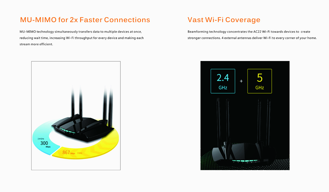 Ρυθμός σήματος: 5 GHz: Έως 867 Mbps, 2,4 GHz: Έως 300 Mbps