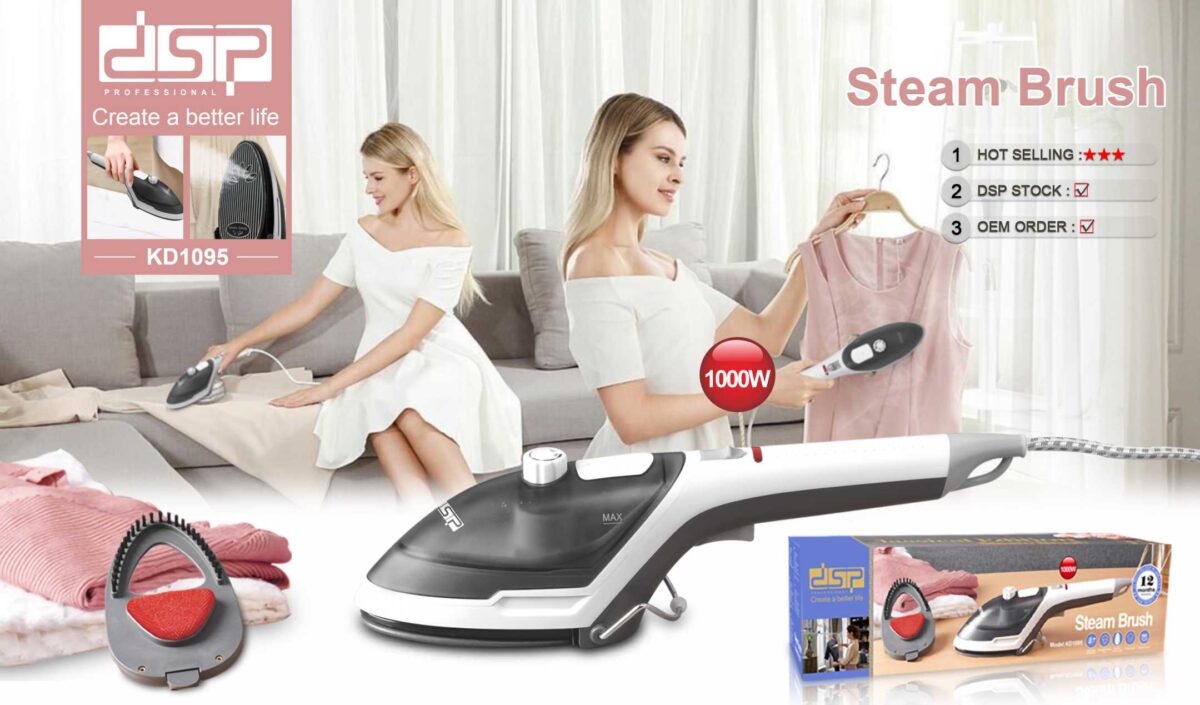 Ατμοκαθαριστής ρούχων χειρός της DSP, σε εργονομικό μέγεθος για εύκολη χρήση, με τεχνολογία ατμού που διεισδύει σε έως και 4 επίπεδα υφάσματος, σιδερώνει και απολυμαίνει εις βάθος χωρίς να βρέχει ή να αλλοιώνει το ρούχο. Κατάλληλο για επαγγελματική χρήση.