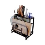Βάση οργάνωσης σκευών κουζίνας, μεταλλική, με πρακτικές θέσεις για καπάκι κατσαρόλας, βάση κοπής και μαχαιροπίρουνα.