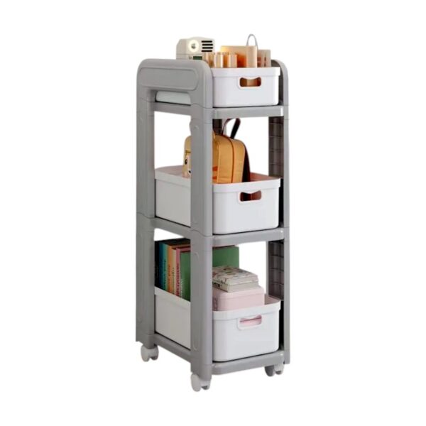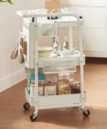 Εργονομικός σχεδιασμός για εξοικονόμηση χώρου και εύκολη καθημερινή χρήση, με ράφια μεγάλης χωρητικότητας και περιστρεφόμενες ρόδες 360° με στοπ ασφαλείας.