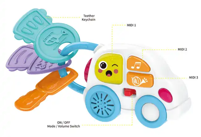 Βρεφικό παιχνίδι αυτοκίνητο μπρελόκ με πλήκτρα ήχων και 3 κλειδάκια-teether με μαλακή μη τοξική επικάλυψη ιδανικά για μασητικό παιχνίδι.