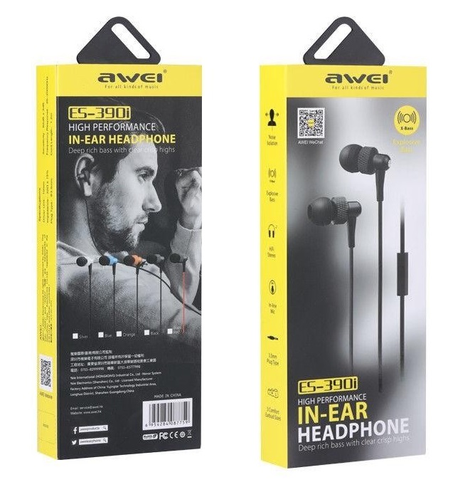 Ενσύρματα ακουστικά ES-970i της Awei με εξαιρετική ποιότητα ήχου και δυνατότητα να απαντάτε στις κλήσεις σας ή να αλλάζετε την μουσική σας με το πάτημα ενός κουμπιού.