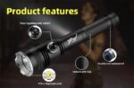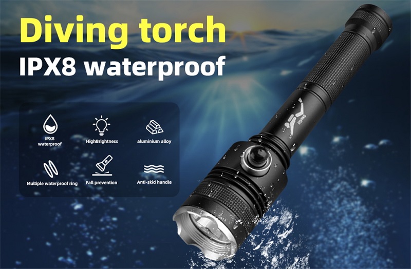 Επαναφορτιζόμενος καταδυτικός φακός LED XP-021 με ισχυρό φωτισμό, 3 λειτουργίες και στιβαρή ανθεκτική κατασκευή με περίβλημα αλουμινίου για μέγιστη ανθεκτικότητα.