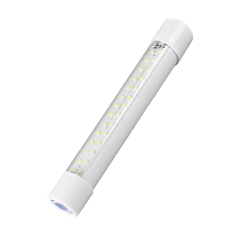 Επαναφορτιζόμενος σωλήνας φωτισμού LED 80W, ιδανικός για πολλαπλές χρήσεις όπως φωτισμό σε εξωτερικούς χώρους όπου δεν υπάρχει πρόσβαση ρεύματος, δραστηριότητες και χόμπυ, camping, ψάρεμα, πεζοπορία κτλ, ή καταστάσεις έκτακτης ανάγκης. Διαθέτει έξτρα πλαινό φακό LED, λουράκι και ισχυρό μαγνήτη κατά μήκος για τοποθέτηση σε μεταλλικές επιφάνειες. Χαρακτηριστικά: Μήκος: 35cm, Ισχύς: 80W, SMD2835: 56 LEd’s, Επαναφορτιζόμενη μπαταρία 18650 3000mah, Χρόνος φόρτισης: 2 ώρες, Αυτονομία έως και 7 ώρες σε χαμηλή ένταση, Θερμοκρασία φωτισμού: 6500Κ, Τάση φόρτισης: 5V.