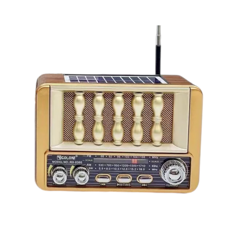 Επαναφορτιζόμενο ραδιόφωνο Retro με ηλιακό πάνελ – RX-836S-S – 370083 – Gold