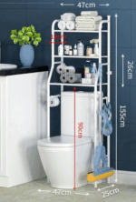 Επιδαπέδια ραφιέρα μπάνιου μεταλλική, συναρμολογούμενη, με 3 πρακτικά ράφια και πλαϊνές κρεμάστρες, ιδανική για οργάνωση και εξοικονόμηση χώρου καθώς τοποθετείται επάνω από τη λεκάνη τουαλέτας. Διαστάσεις ραφιέρας: 47 × 25 x 155 cm.
