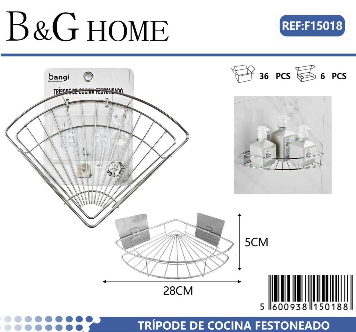 Επιτοίχιο γωνιακό ράφι μπάνιου, μεταλλικό, με κρεμάστρες.Τοποθετείται εύκολα και σταθερά σε λεία επιφάνεια με ισχυρά αυτοκόλλητα (περιλαμβάνονται). Βάρος αντοχής: 3kgΔιαστάσεις: 28 x 15cm