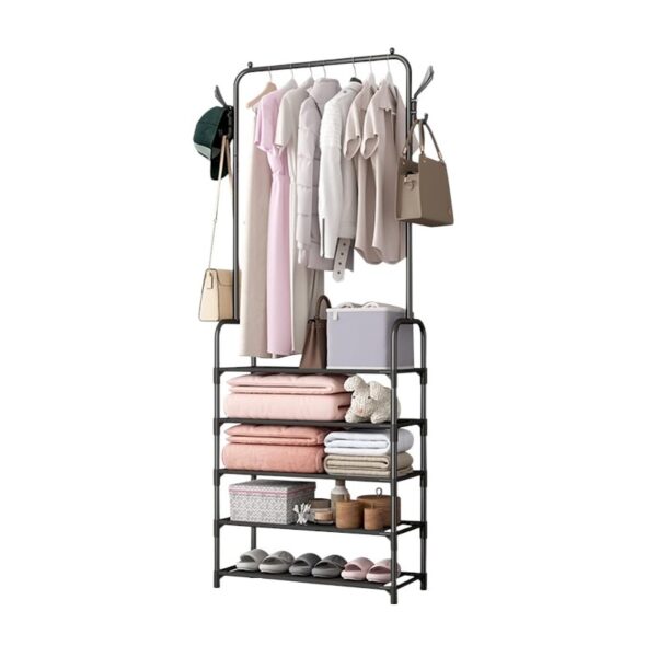 Επιτοίχιο γωνιακό ράφι μπάνιου, πλαστικό, με κρεμάστρες.