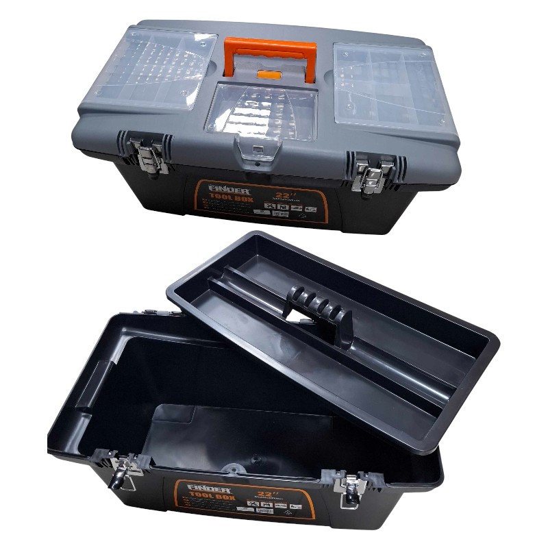 Πλαστική εργαλειοθήκη Finder μεγέθους 22” με πολλαπλές θήκες αποθήκευσης και διαχωριστικά.