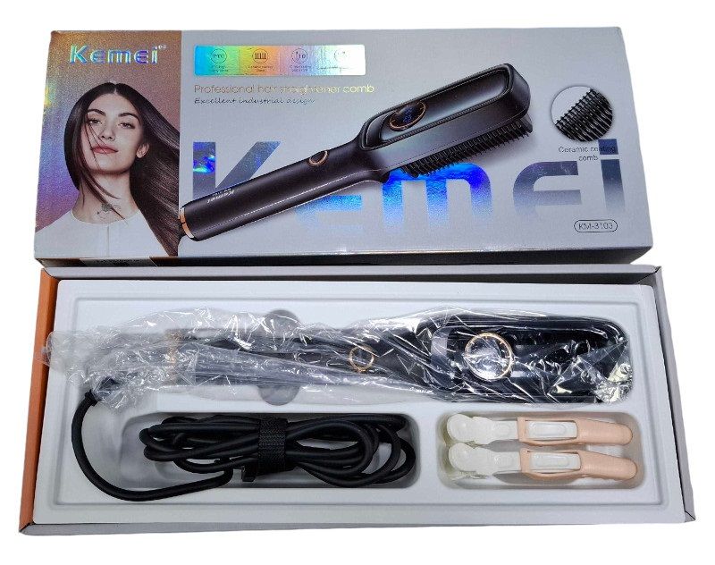 Ηλεκτρική βούρτσα μαλλιών της Kemei, ιδανική για εύκολο ίσιωμα και χτένισμα, για λείο και λαμπερό αποτέλεσμα, με ορατά λιγότερη φθορά της τρίχας σε σχέση με τις πρέσες ισιώματος.