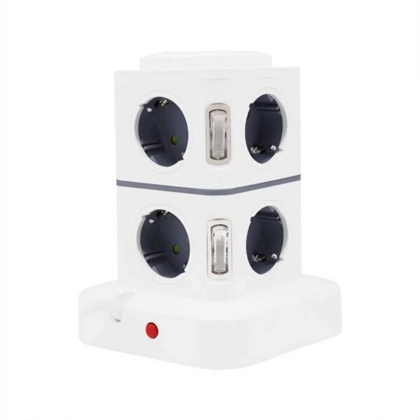 Κάθετο πολύπριζο 12 θέσεων με διακόπτες και πρίζα Σούκο – RC-G12P.