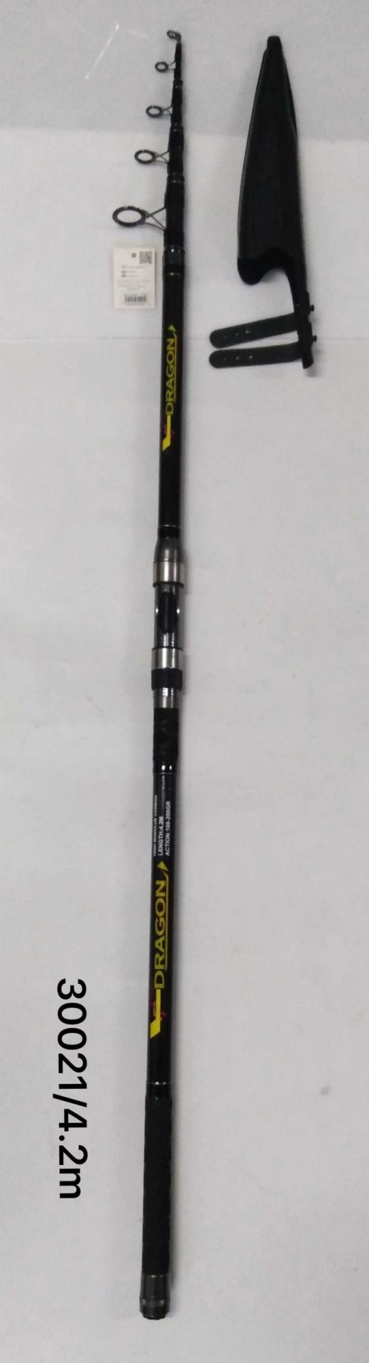 Καλάμι ψαρέματος, τηλεσκοπικό, από ενισχυμένες ίνες, οπλισμένο με οδηγούς και εργονομική λαβή υψηλής ποιότητας.