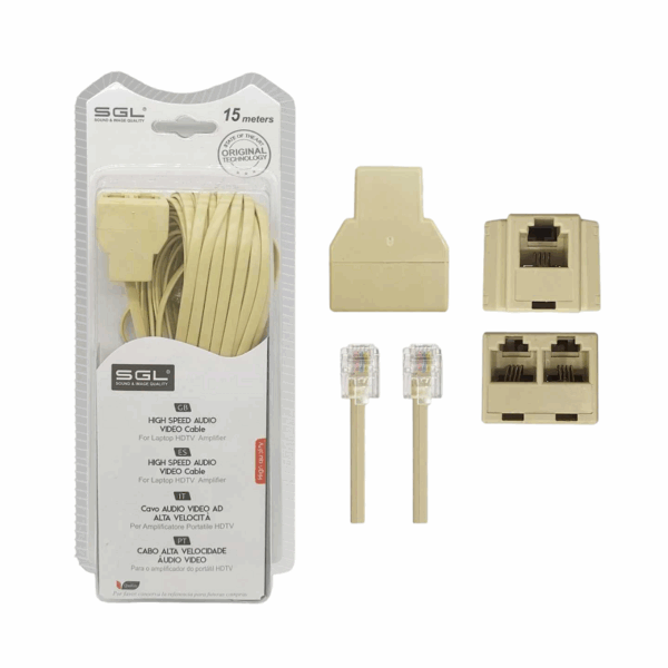 Καλώδιο γραμμής τηλεφώνου με διακλαδωτή – 6P4C1-2 – 20m – 097107