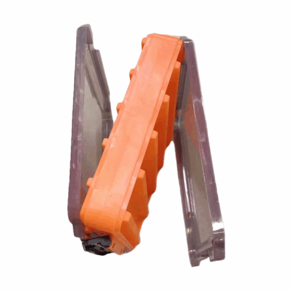 Πλαστικό κουτί-κασετίνα διπλής όψης, ιδανικό για την αποθήκευση και μεταφορά των αξεσουάρ αλιείας σας, με πολλαπλές θήκες και διαχωριστικά.
