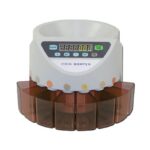 Τώρα υπάρχει ένας σύγχρονος, γρήγορος και αξιόπιστος τρόπος για να μετράτε και να ταξινομείτε τα κέρματα σας. Ο καταμετρητής και ταξινομητής κερμάτων καταμετρά έως και 300 κέρματα/λεπτό και ταξινομεί τα κέρματα ανάλογα με την αξία τους. Διαθέτει 8 θυρίδες για όλους τους τύπους κερμάτων του ευρώ (€2, €1, 50λ, 20λ, 10λ, 5λ, 2λ, 1λ). Μεγάλο άνοιγμα θυρίδων για εύκολη αφαίρεση των κερμάτων. Υπολογίζει την ποσότητα, τη συνολική αξία των κερμάτων, αλλά και την αξία ανά είδος. Οι πληροφορίες εμφανίζονται στην οθόνη LCD. Κατάλληλος για επαγγελματική χρήση.