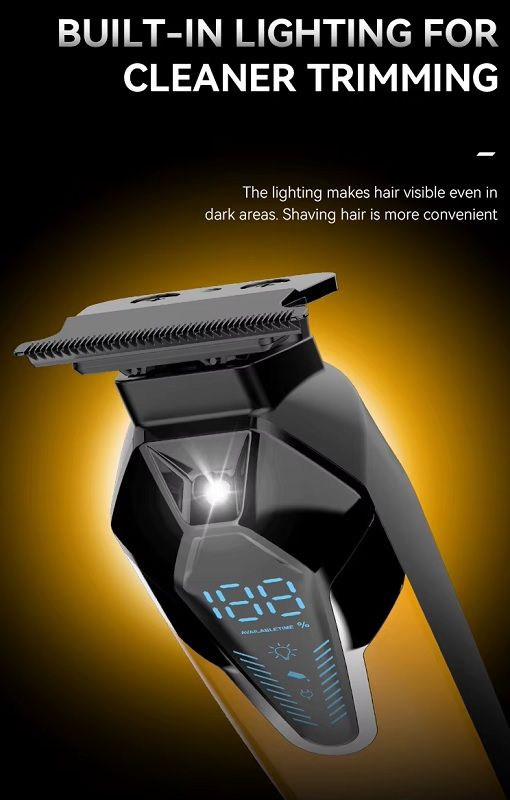 Επαναφορτιζόμενη κουρευτική μηχανή σε εντυπωσιακό σχεδιασμό, με φωτισμό LED για μέγιστη ορατότητα και έλεγχο κοπής, με λεπίδα ακριβείας από ανοξείδωτο ατσάλι, μεγάλη αυτονομία μπαταρίας, εργονομικό design και αξεσουάρ, κατάλληλη για κάθε είδους περιποίηση σε μαλλιά, γένια και σώμα.