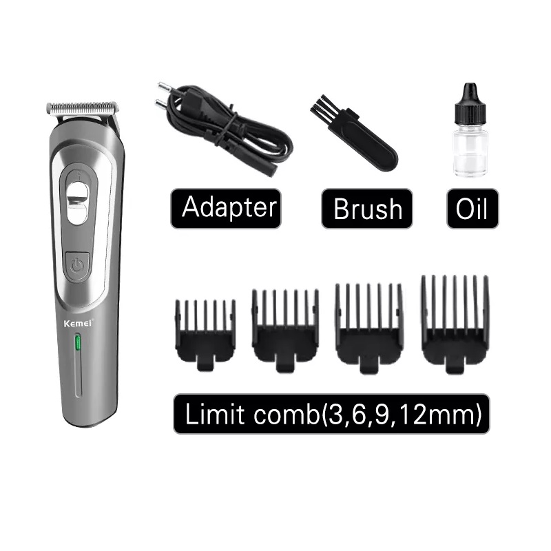 Πλήρες σετ κουρέματος με επαναφορτιζόμενη κουρευτική μηχανή της Kemei, με λεπίδα ακριβείας από ανοξείδωτο ατσάλι, κατάλληλη για κάθε είδους περιποίηση σε μαλλιά, γένια και σώμα.