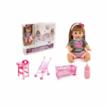 Κούκλα μωρό με πλήρες σετ κρεβατάκι, καρεκλάκι φαγητού, και καρότσι για να φροντίσεις την κούκλα σου σαν ένα πραγματικό μωράκι!
