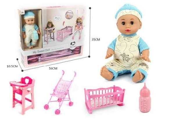 Κούκλα μωρό με πλήρες σετ κρεβατάκι, καρεκλάκι φαγητού, και καρότσι για να φροντίσεις την κούκλα σου σαν ένα πραγματικό μωράκι!
