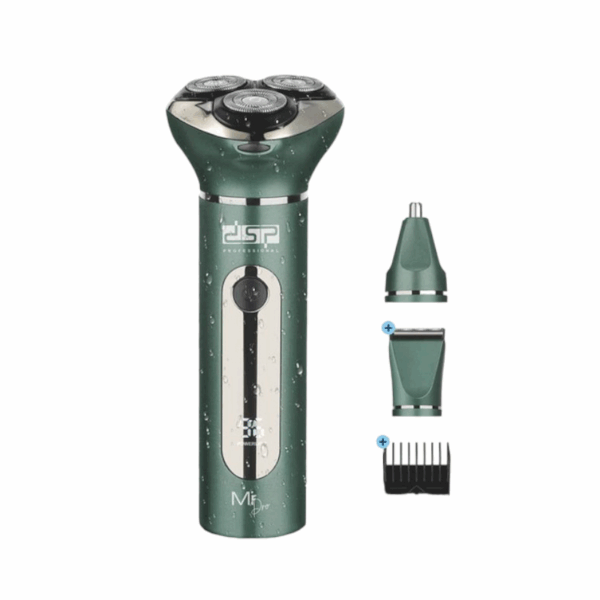 Επαναφορτιζόμενη ξυριστική μηχανή της DSP με εργονομικό σχεδιασμό και 3 κυκλικές λεπίδες που προσαρμόζονται στις καμπύλες του προσώπου, για βαθύ ξύρισμα και μέγιστο αποτέλεσμα χωρίς ερεθισμούς.