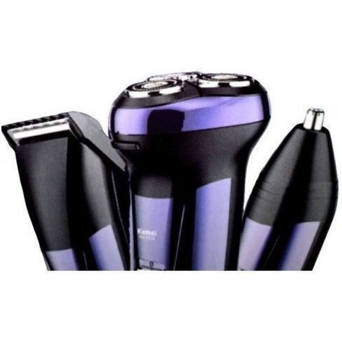 Επαναφορτιζόμενη ξυριστική μηχανή KM-6539 της Kemei, με όλα τα απαραίτητα αξεσουάρ για κάθε είδους περιποίηση.