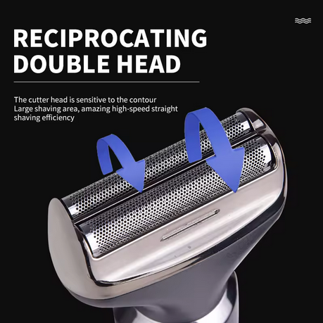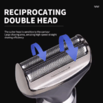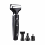 Επαναφορτιζόμενη ξυριστική μηχανή 4 σε 1 της DSP με εργονομικό σχεδιασμό και διπλή λεπίδα για βαθύ ξύρισμα και μέγιστο αποτέλεσμα χωρίς ερεθισμούς.
