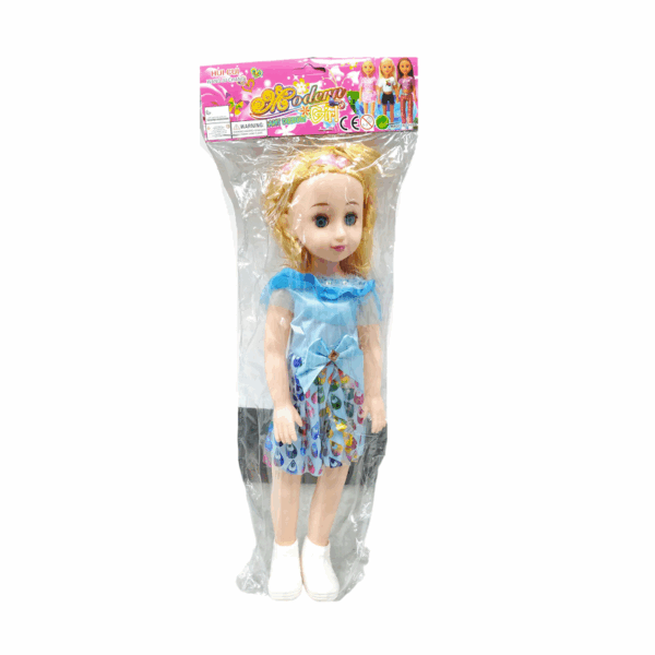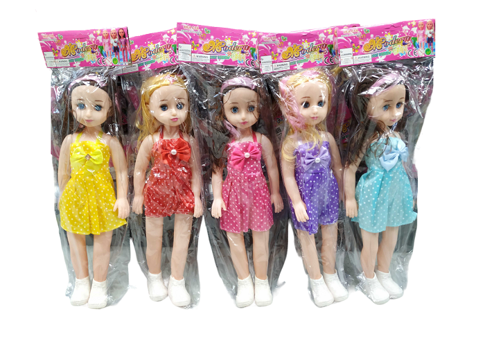 Παιδική κούκλα με μακριά μαλλιά και υπέροχο φόρεμα.
