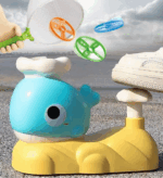 Παιδικό παιχνίδι με φάλαινα που εκτοξεύει Frisbee με το πάτημα ενός κουμπιού για να τα πιάσεις με την απόχη σου.