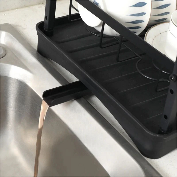 Πιατοθήκη αποστράγγισης διώροφη inox, σε πρακτικό σχεδιασμό, με θήκη μαχαιροπίρουνων.