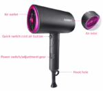 Υψηλής απόδοσης, για γρήγορο και αποτελεσματικό στέγνωμα, με προστασία από την υπερθέρμανση. Με 2 ρυθμίσεις ταχύτητας. Μικρό, πρακτικό μέγεθος, με πτυσσόμενη λαβή, ιδανικό για μεταφορά σε ταξίδια.