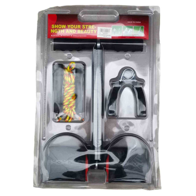 Πλήρες, πολυλειτουργικό σετ εκγύμνασης για όλο το σώμα με 3 διαφορετικά όργανα. Το σετ περιλαμβάνει: Jump Rope για αερόβια άσκηση, Hand Grip για ενδυνάμωση χεριών και Spring Action Rover για εκγύμναση πλάτης-στήθους. Ιδανικό σετ για πλήρη εκγύμναση στο σπίτι σας.