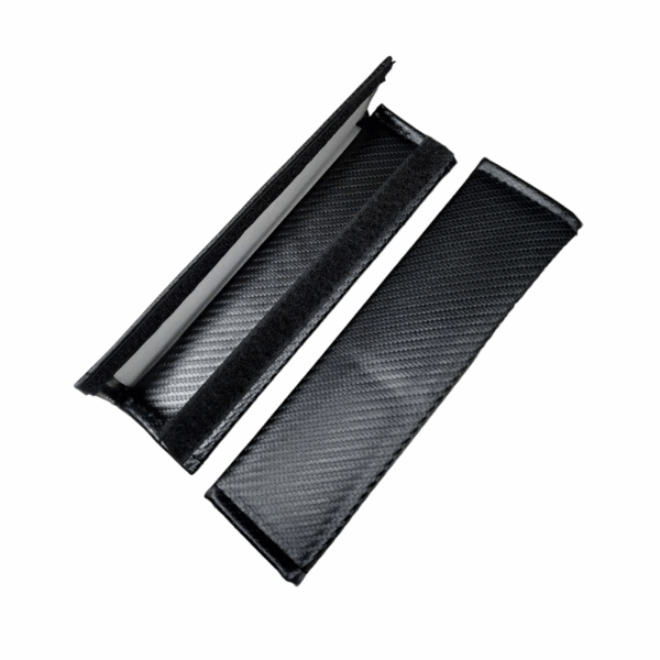 Προστατευτικά μαξιλαράκια ζώνης αυτοκινήτου σε χρώμα carbon μαύρο, από ενισχυμένο ανθεκτικό υλικό, απόλυτα φιλικό προς το δέρμα, που προστατεύει τη ζώνη σας από φθορές και σας προσφέρει άνετη εφαρμογή χωρίς ενοχλήσεις.