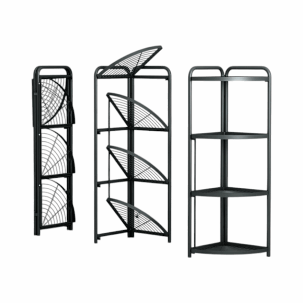 Μεταλλική ραφιέρα 5 επιπέδων γωνιακή, πτυσσόμενη για εύκολη αποθήκευση, ιδανική για την κουζίνα ή την αποθήκη. Διαστάσεις: 85 x 51 x 35 cm. Ύψος ραφιών: 34cm