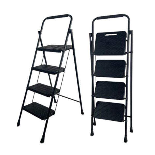 Πτυσσόμενη σκάλα 4 σκαλιών, με στιβαρή σιδερένια κατασκευή, και εύκολη αποθήκευση.