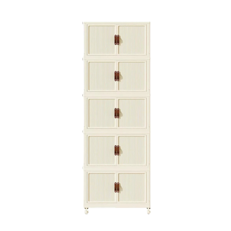 Πτυσσόμενη ντουλάπα αποθήκευσης 5 επιπέδων, πλαστική, με ρόδες για εύκολη μετακίνηση. Οι όροφοι αποσπώνται ώστε να μπορείτε να χρησιμοποιήσετε όσα μέρη χρειάζεστε, ενώ είναι πλήρως πτυσσόμενη για εύκολη αποθήκευση όταν δεν χρησιμοποιείται. Διαστάσεις: 115x48x24cm.