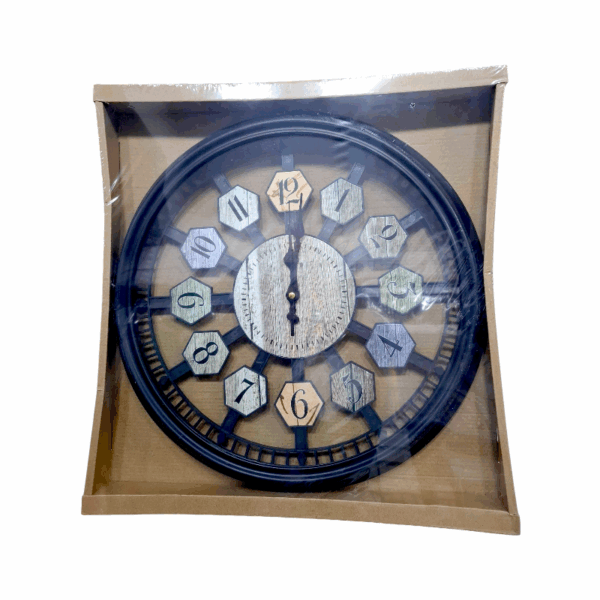 Ρολόι τοίχου πλαστικό, σε εντυπωσιακό Vintage σχεδιασμό με μεταλλικό εφέ και ανάγλυφα σχέδια. Διάμετρος: 46cm