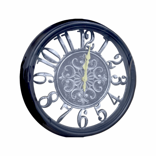 Ρολόι τοίχου σε Vintage σχεδιασμό με ιδιαίτερο σχέδιο στην κορνίζα και μεταλλικό εφέ, που μπορεί να ταιριάξει σε κάθε χώρο. Υλικό: πλαστικό, Διάμετρος: 46cm.