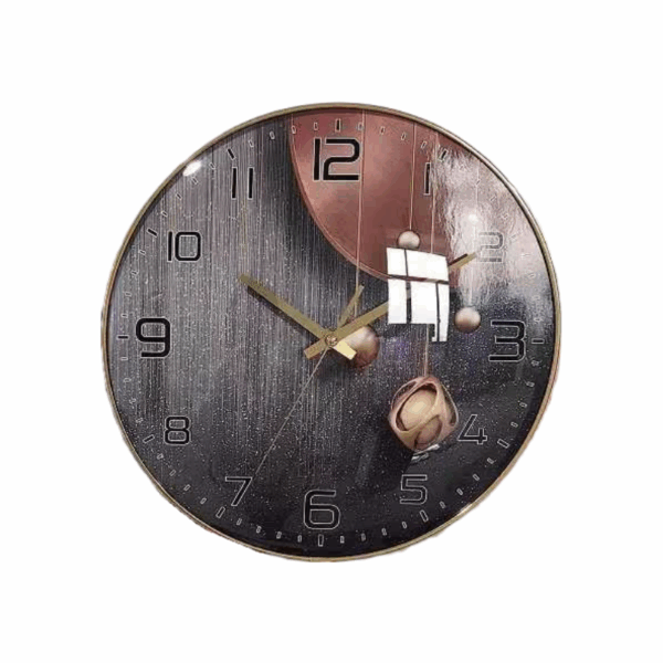 Ρολόι τοίχου σε μοντέρνο σχεδιασμό με κορνίζα σε μεταλλικό εφέ, που μπορεί να ταιριάξει σε κάθε χώρο.