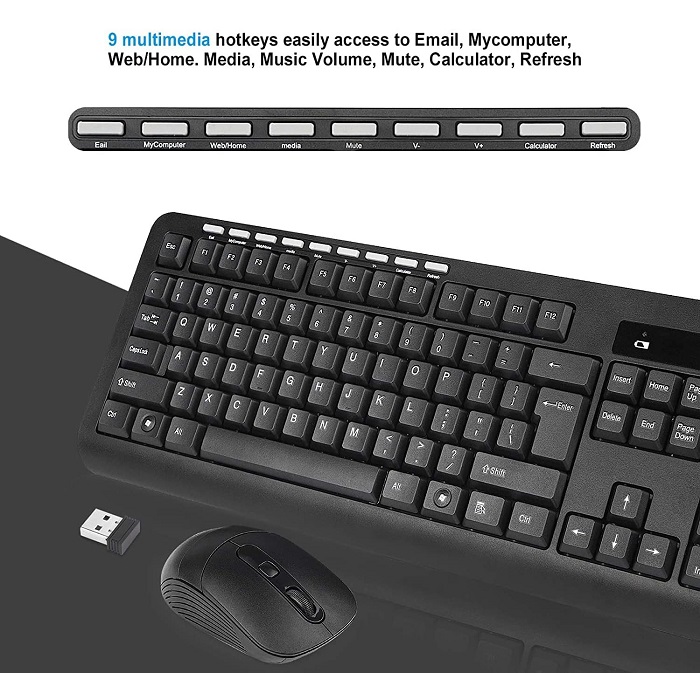 Σετ ασύρματο πληκτρολόγιο & ποντίκι με λεπτό κομψό σχεδιασμό, υψηλής απόδοσης και με άμεση ασύρματη σύνδεση Bluetooth για έυκολη χρήση χωρίς καλώδια. Ταχύτητα: 2,4 GHz, Πληκτρολόγιο 78 πλήκτρων, 9 Multimedia buttons, Απόσταση λειτουργίας: έως 10 μέτρα (χωρίς εμπόδιο), Μπαταρία: 1 * μπαταρία AAA για πληκτρολόγιο, 2 * μπαταρίες AAA για το ποντίκι (δεν περιλαμβάνονται), Τάση λειτουργίας πληκτρολογίου: 3V, Ρεύμα: 1,5ma, Ρύθμιση DPI 1000-1600, Μέγεθος πληκτρολογίου: 45*16*3cm, Βάρος πληκτρολογίου: 330g, Μέγεθος ποντικιού: 11,5*6*4cm, Βάρος ποντικιού: 58g, Διαστάσεις συσκευασίας: 52.5*17*4cm.