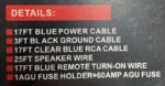 Πλήρες σετ καλωδίωσης για τον ενισχυτή του αυτοκινήτου σας, για εύκολη εγκατάσταση, συμβατό με όλα τα αυτοκίνητα. Υψηλής ποιότητας και απόδοσης. Χαμηλός θόρυβος και παραμόρφωση. Περιλαμβάνεται στο πακέτο: καλώδιο τροφοδοσίας σύρμα γείωσης καλώδιο ελέγχου καλώδιο διασύνδεσης RCA υποδοχή ασφαλειών