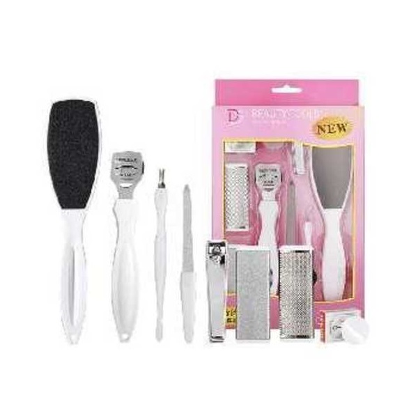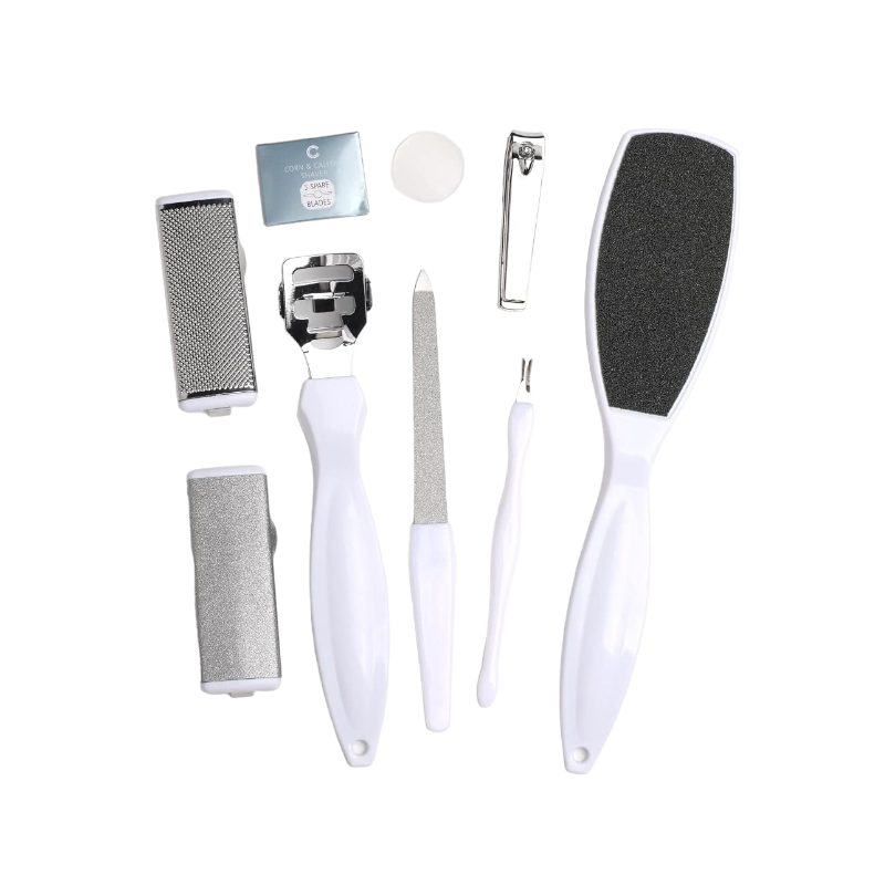 Πλήρες σετ πεντικιούρ με 5 εργαλεία για κόψιμο & περιποίηση νυχιών, λιμάρισμα/απολέπιση ποδιού και αφαίρεση κάλων και σκληρύνσεων.Κατασκευασμένα από ανοξείδωτο ατσάλι με εργονομικές πλαστικές λαβές.
