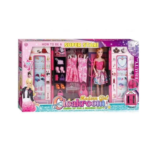 Σετ κούκλα με ντουλάπα με πολλά αξεσουάρ ομορφιάς και μακριά μαλλιά για να την περιποιηθείς όπως εσύ θα ήθελες!