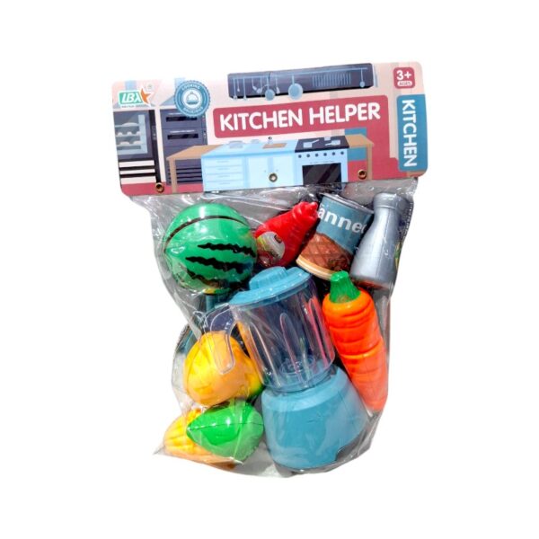 Παιδικό σετ κουζίνας με μπλέντερ, αξεσουάρ, σκεύη και τρόφιμα, σε υπέροχο πολύχρωμο σχεδιασμό.
