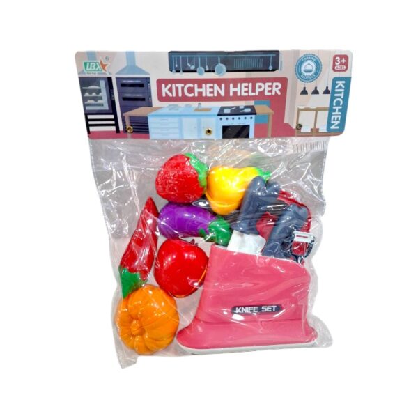 Παιχνίδι νεροχύτης κουζίνας με αξεσουάρ σκεύη και τρόφιμα, σε υπέροχο πολύχρωμο σχεδιασμό.