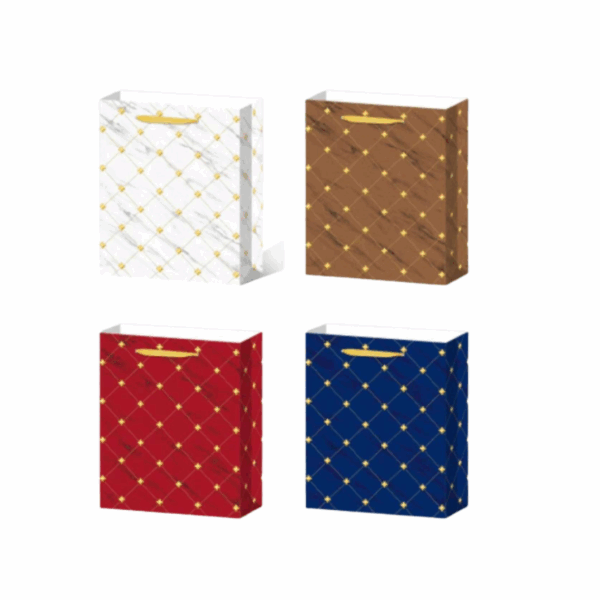 Σακούλες δώρου χρωματιστές, με σχέδιο και χειρολαβή-κορδέλα. Σετ 12 τεμαχίων-μεσαίο μέγεθος. *Επιλογή χρώματος κατόπιν διαθεσιμότητας.